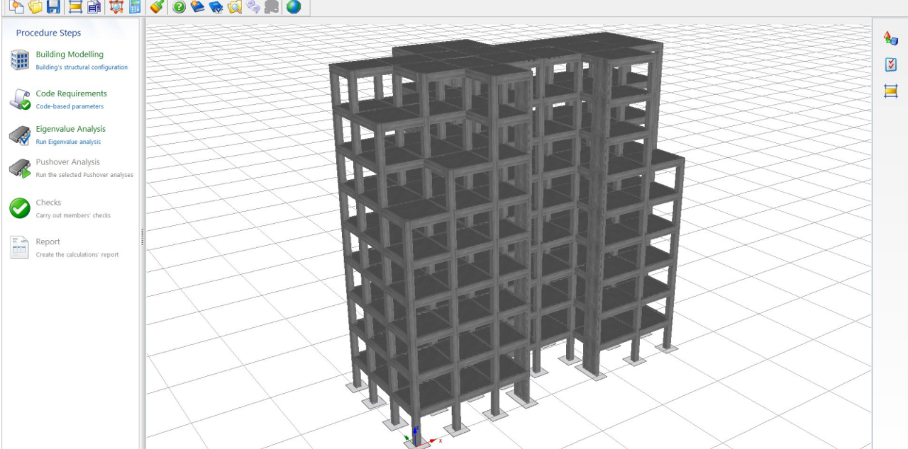 建筑模型 3D楼层视图 3D模型 玻璃钢和楼梯分配 不同的基础水平 显示有限元模型 代码要求 变形的形状查看器 变形的形状查看器 会员支票 接头检查 报表生成器 报告预览